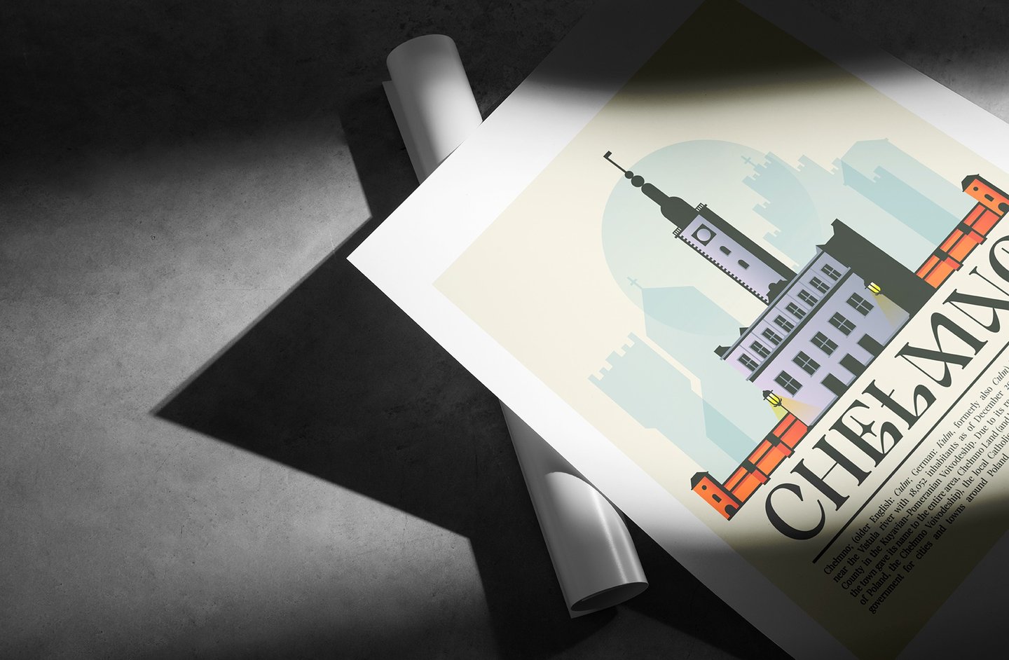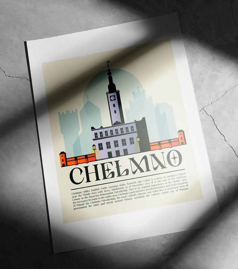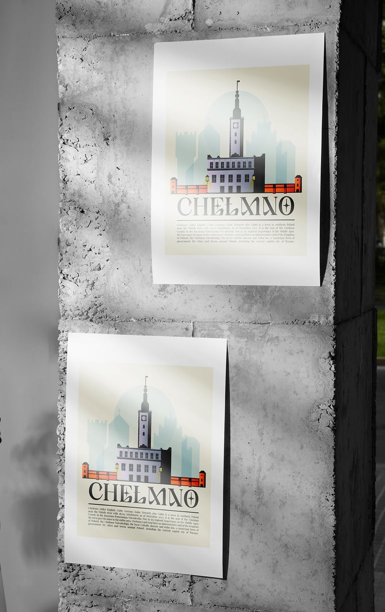 Minimalistyczny projekt plakatu miasta Chełmno do prywatnej kolekcji.