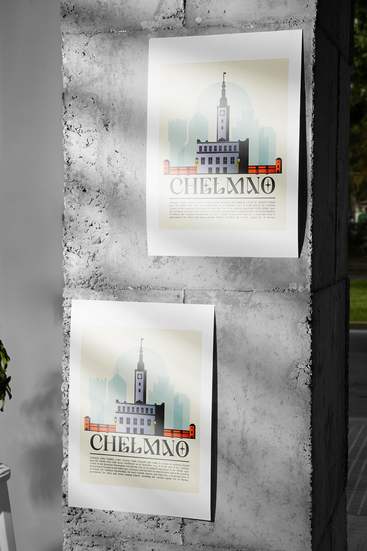 Minimalistyczny projekt plakatu miasta Chełmno do prywatnej kolekcji.